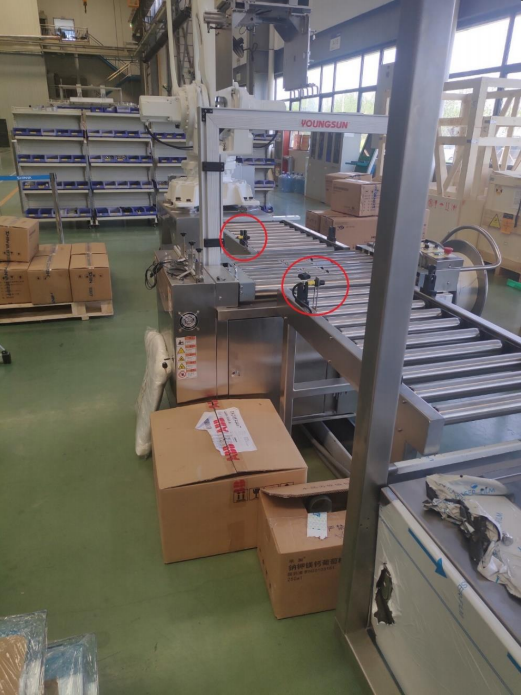 檢測打包機前輸送帶上包裝箱到位及包裝箱離開打包工序。