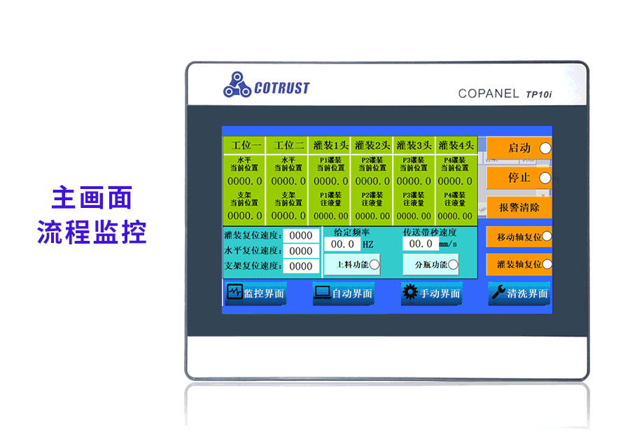 不同工位在觸摸屏上對應位置按鈕,設置不同參數,以及復位報警操作。