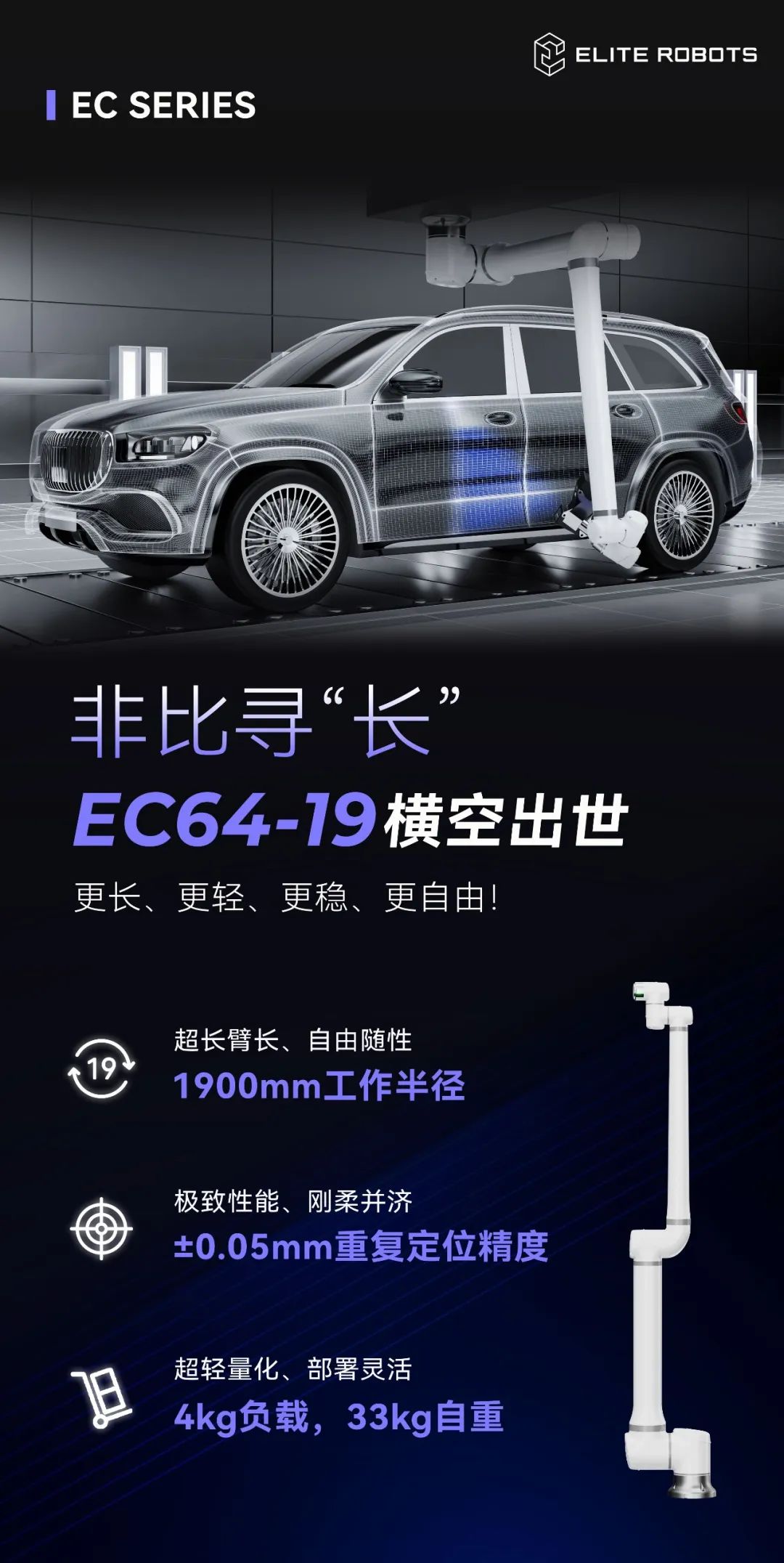 艾利特EC64-19協(xié)作機器人新品上市,超長臂展,自由隨性!