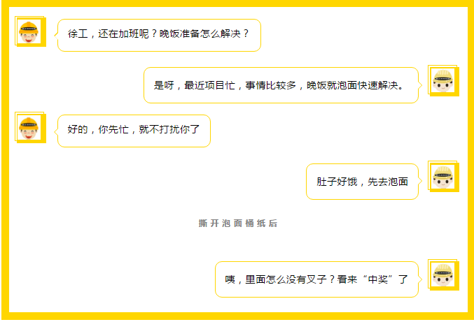 工控男加班的夜晚生活中,泡面桶里沒有叉子這種“中獎”的發生的概率還真不是少數,試想一下,如果消費者的身邊沒有其他可以替代叉子的工具,這會給消費者帶來多大的困擾?那么,造成泡面桶里沒