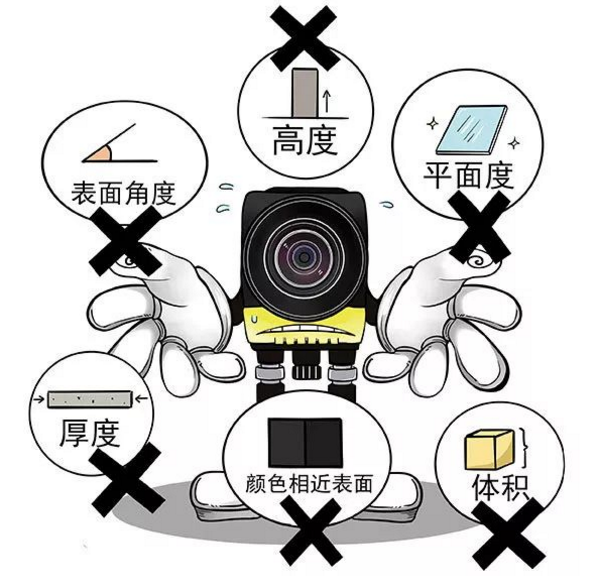以前我們所說的機(jī)器視覺,通常是指2D的視覺系統(tǒng):即通過攝像頭拍到一個(gè)平面的照片,然后通過圖像分析或比對(duì)來識(shí)別物體,能看到物體一個(gè)平面上特征,可用于缺失/存在(有無)檢測(cè)、離散對(duì)象分析圖案